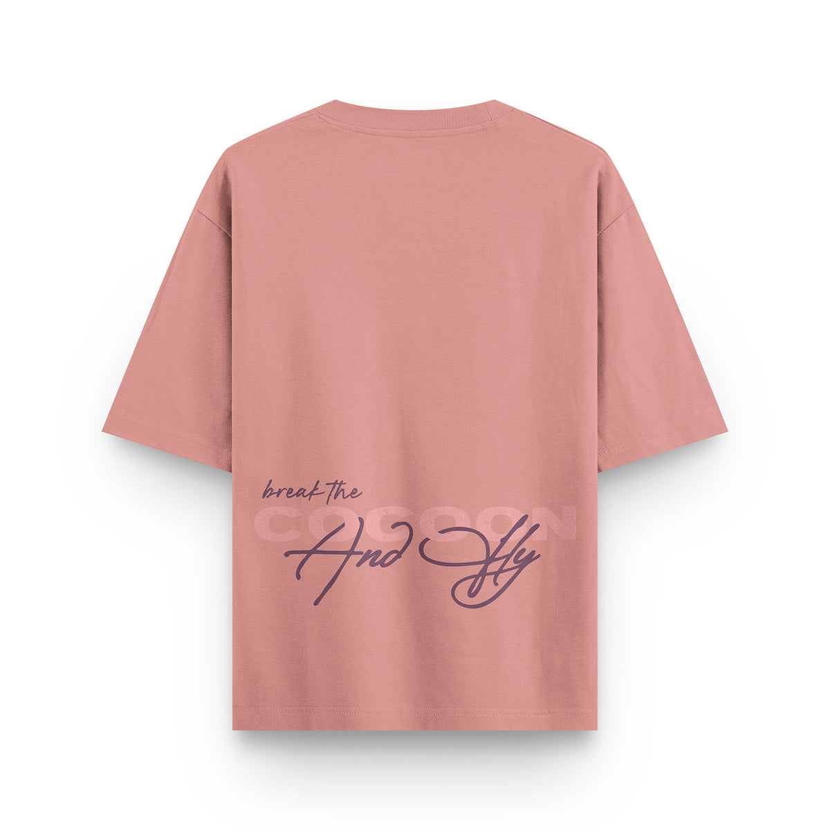 Unleash your wings, one thread at a time. The "Fly High" tee is a mantra of transformation, illustrated through powerful typography. The design on the back boldly proclaims "Break the Cocoon and Fly" in distressed, layered fonts, emphasizing the raw process of growth. On the front, a sweeping script reiterates the message with elegance, creating harmony between strength and grace. Crafted from premium 280 GSM cotton in a comfortable oversized fit, this tee is a subtle yet profound statement for anyone in the midst of their own beautiful transformation.